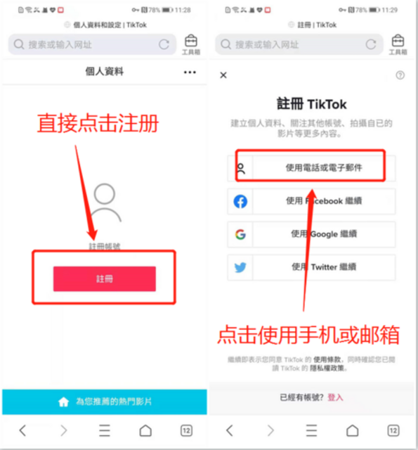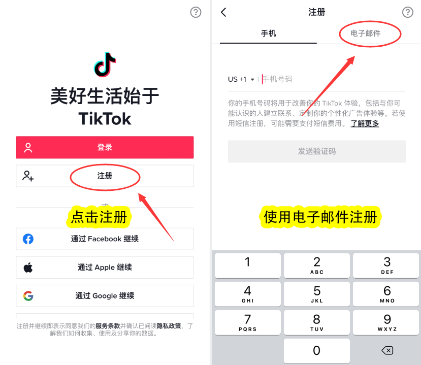 如果还没注册过TikTok账号,按下面的方法进行操作