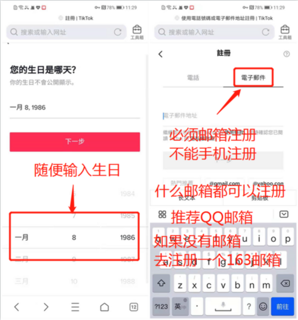 使用国内QQ邮箱,有大概率注册不成功,可以自行测试一下,如果注册不了,那则需要先注册国外的邮箱